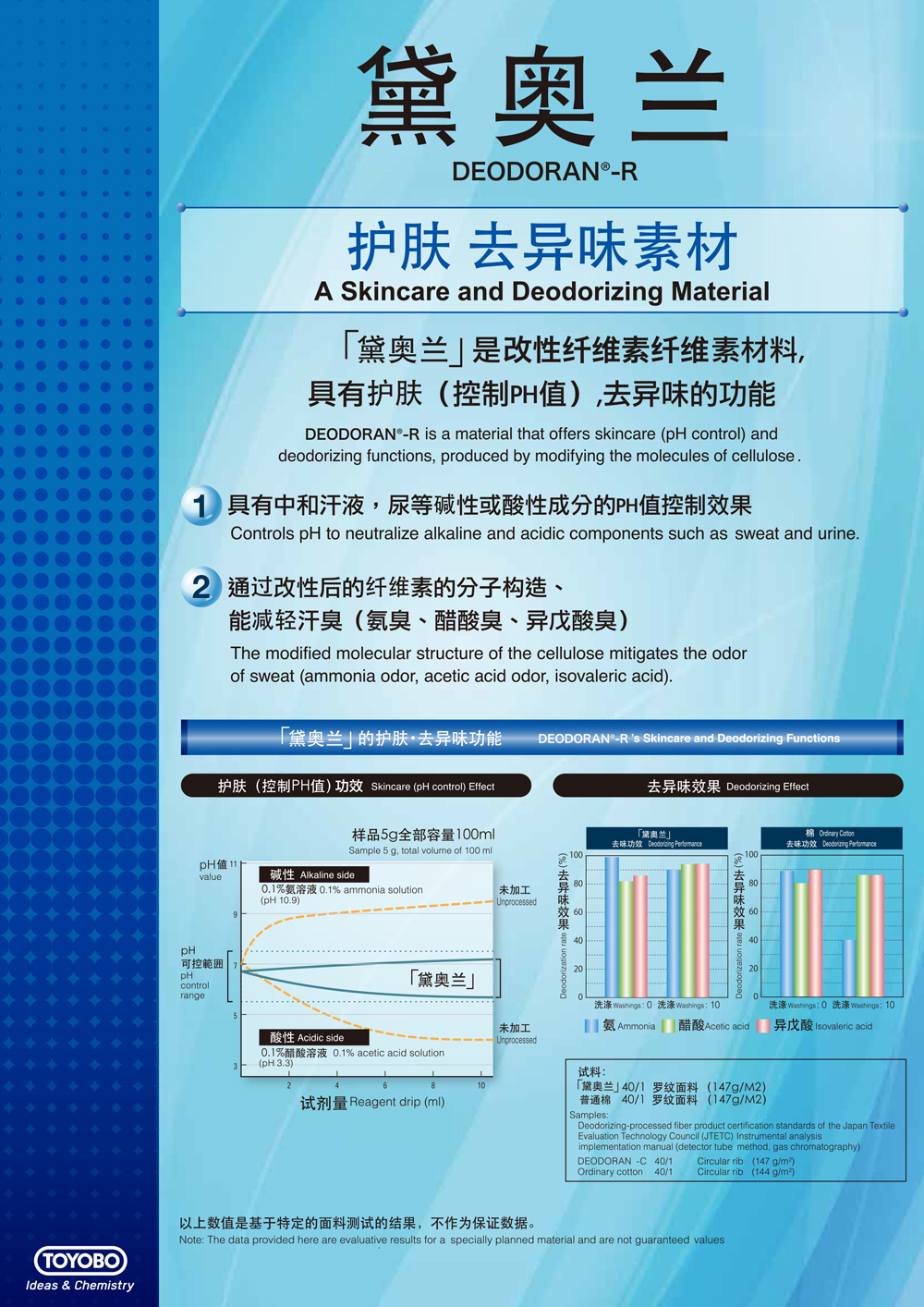 [黛奧蘭]是改性纖維素纖維材料,具有護(hù)膚(控制PH值),去異味的功能。